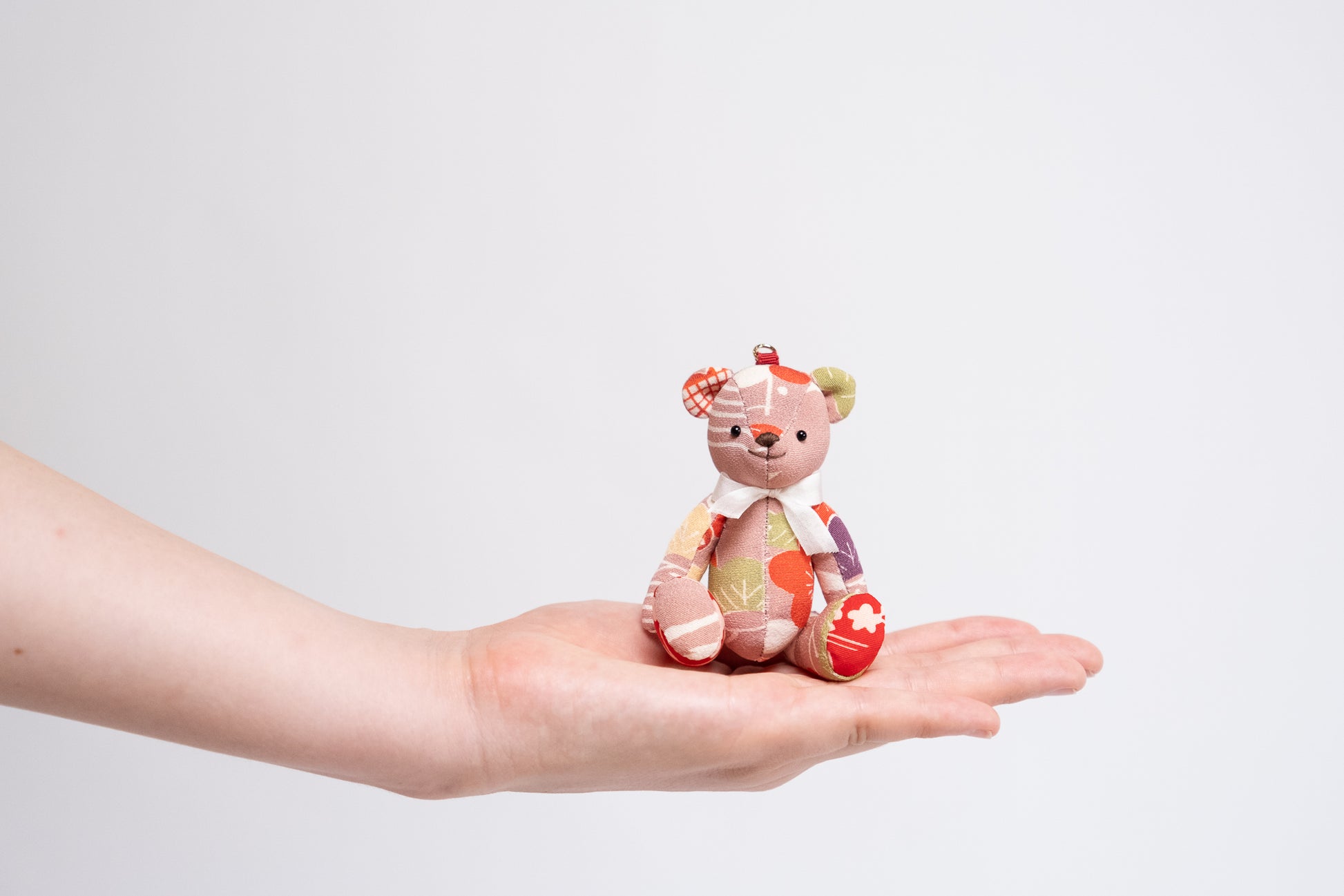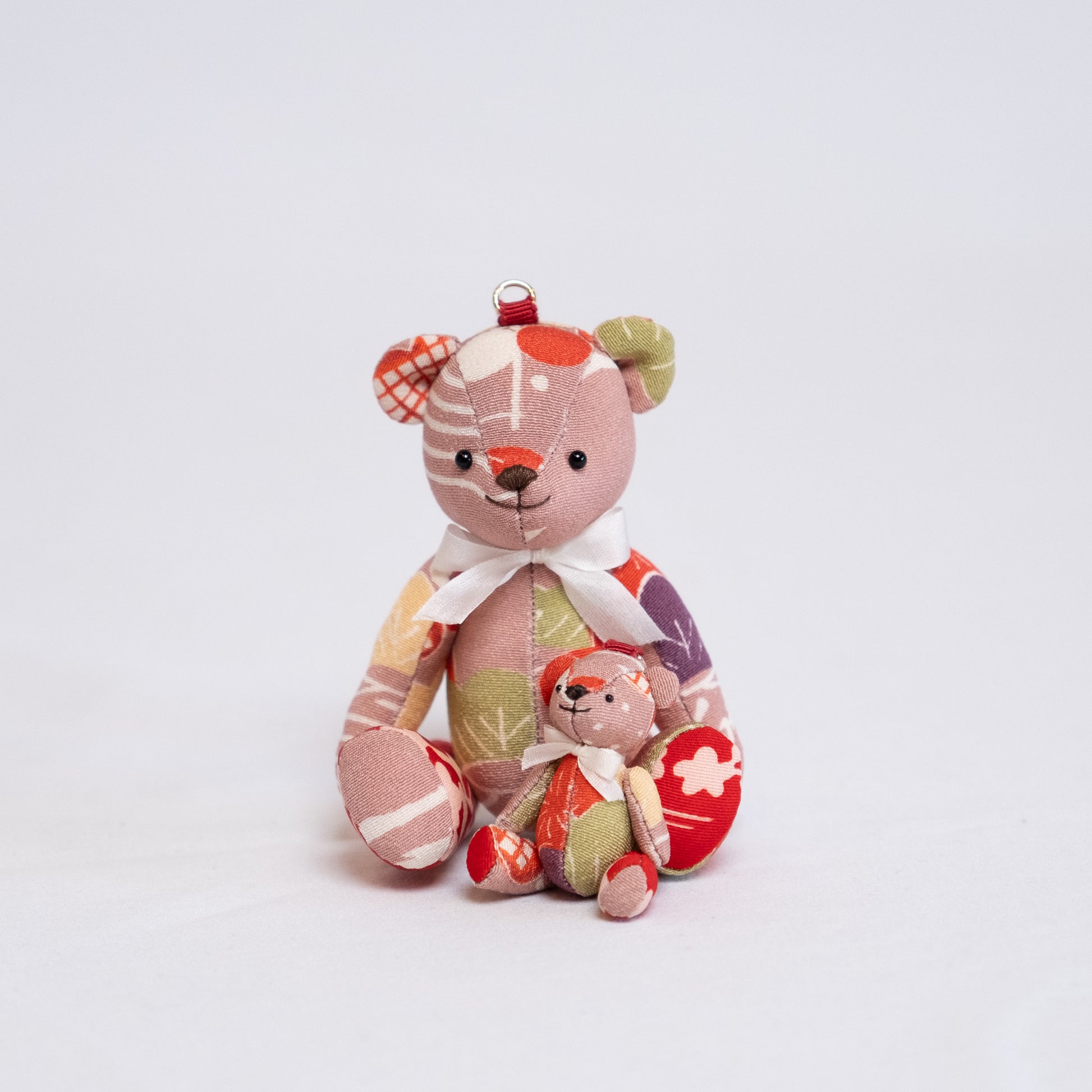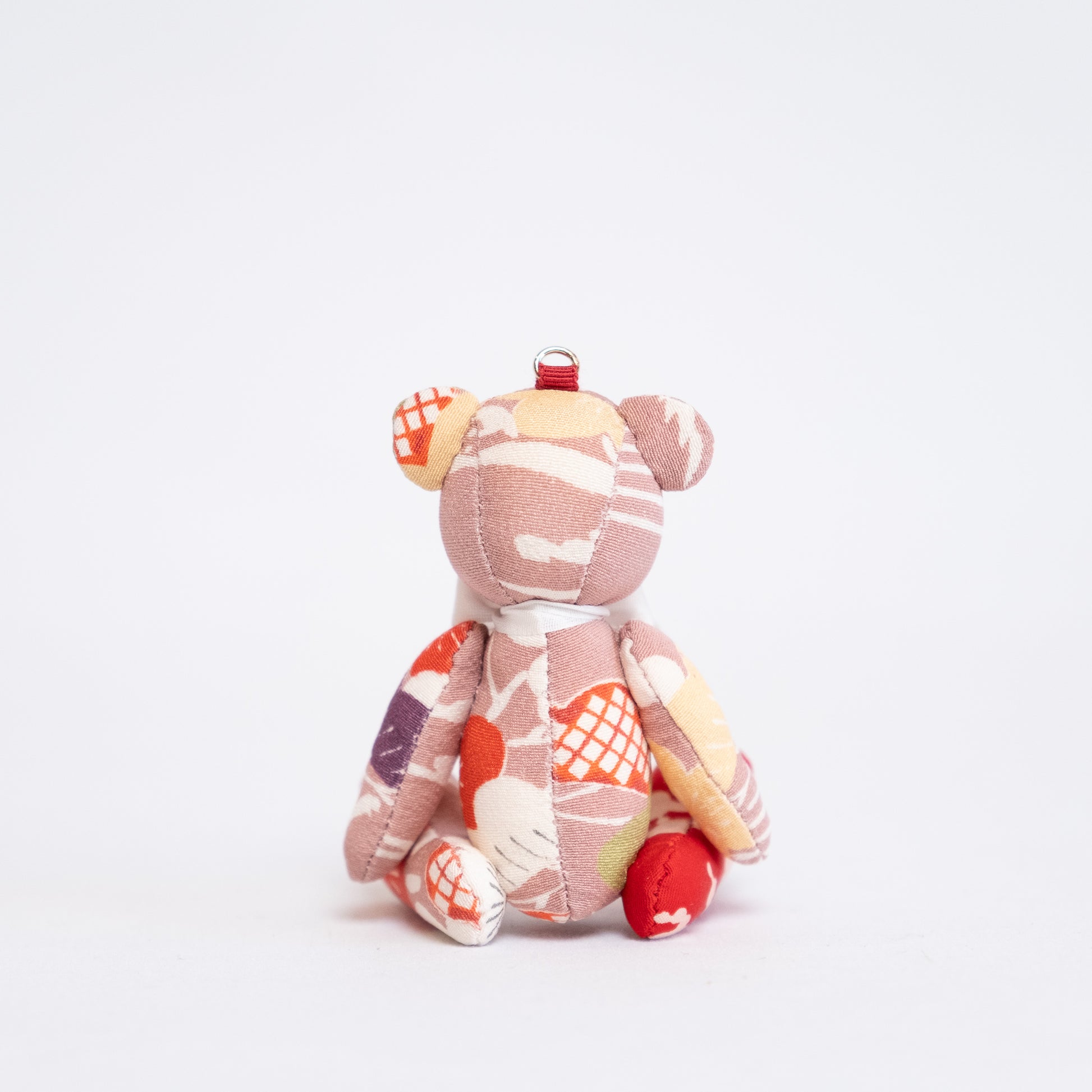 Adorable ours en peluche réalisé à partir d'un kimono en crêpe de soie chirimen rose clair qui ornait autrefois la maiko de l'Umeno Okiya.