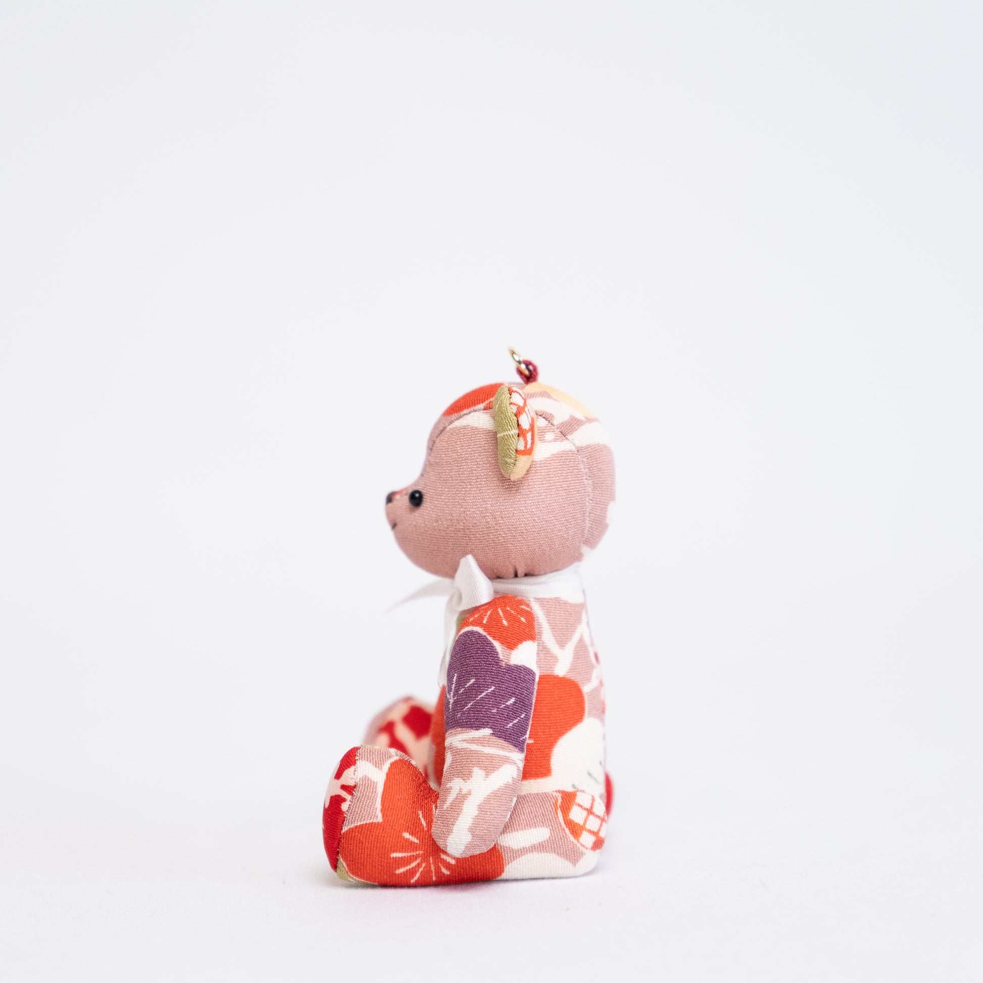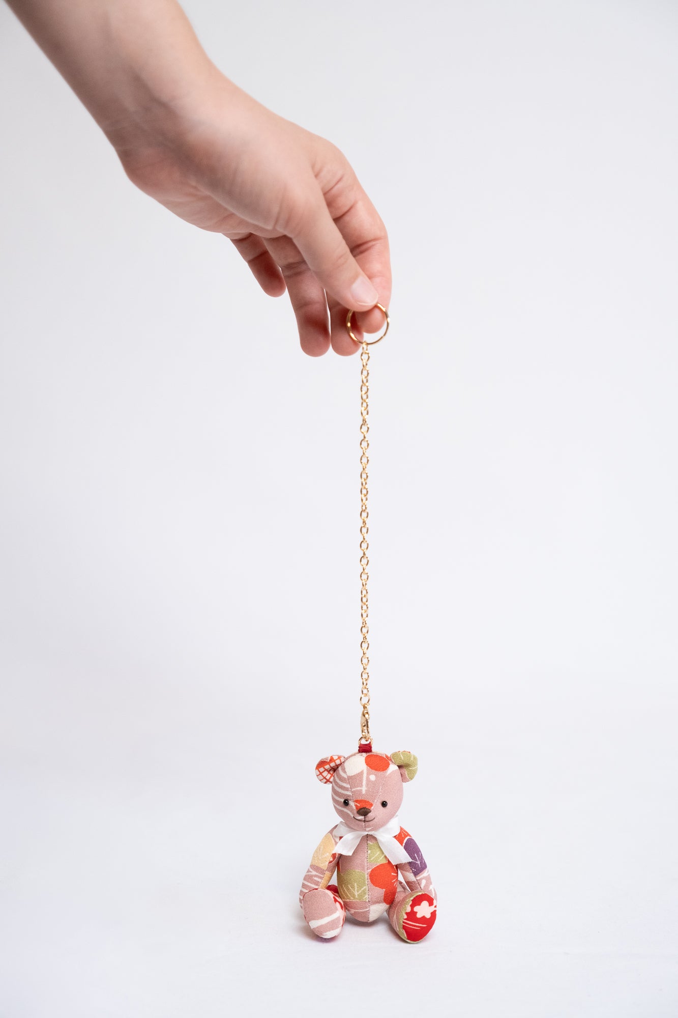 Le nom « SilKuMaiko » est un jeu de mots en japonais, combinant les mots soie (« silku »), ours (« kuma ») et « maiko » ! Méticuleusement fabriqué à la main et livré avec une chaîne en métal doré pour l'attacher à votre sac.